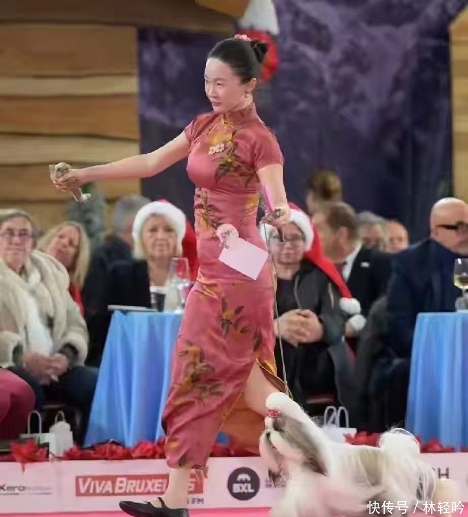 40. 此次出席犬赛时所穿的紧身旗袍,更是清晰勾勒出腹部堆积的脂肪线条。
